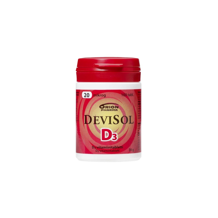 Sugtablett med smak av citrus. Den lilla och välsmakande DeviSol-tabletten löser sig snabbt i munnen och den kan antingen sugas, tuggas eller sväljas. DeviSol-tabletten innehåller vitamin D3 som absorberas väl.