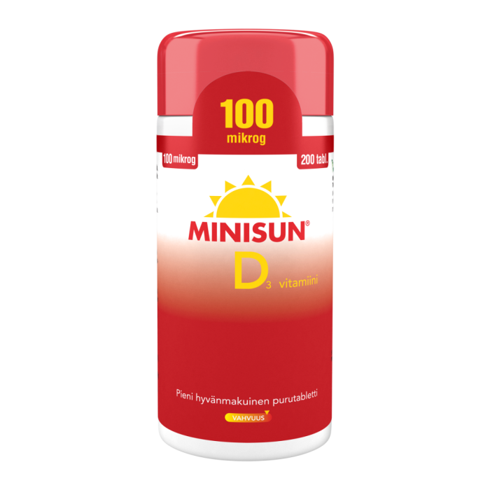 En liten, välsmakande tuggtablett. D3-vitaminpreparat. Innehåller lättupptagligt D3-vitamin och tabletterna är lätta att dosera. En tuggtablett om dagen räcker.